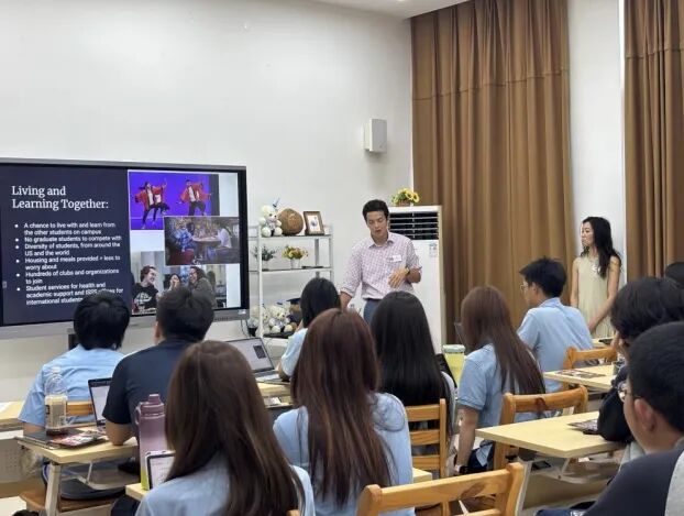 The academic support system has been continuously improved, forming a multi-departmental support network. From one-on-one course selection and college application planning to evening study sessions, after-school tutoring, and peer tutoring programs,we provide personalized guidance and meticulous management. At the same time, we actively connect with top external resources such as Peking University's Yuanpei Program, CTB, ASDAN competitions, and iGEM, and organize university fairs and invite admissions officers to broaden students' development paths.In addition, English listening and speaking classes taught by foreign teachers are offered, supplemented by peer tutoring, English corners, and English newspaper reading and other diverse support activities, creating a mutually supportive and immersive bilingual growth environment.