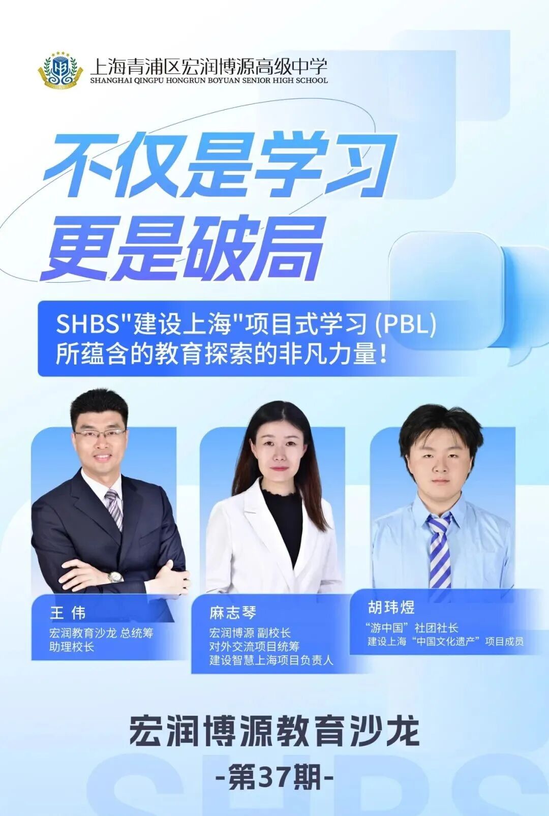 On December 29th evening, the 37th session of the Hongrun Education Forum was held online. This forum was not merely a project summary; it was more like a "roundtable discussion": Vice Principal Ma Zhiqin, the project coordinator, student representative Hu Weiyu, and teacher Wang Wei sat together to review the journey of our school's "Building Shanghai" project-based learning (PBL) that had lasted for six years, and also talked about how education can thrive in real-life situations.